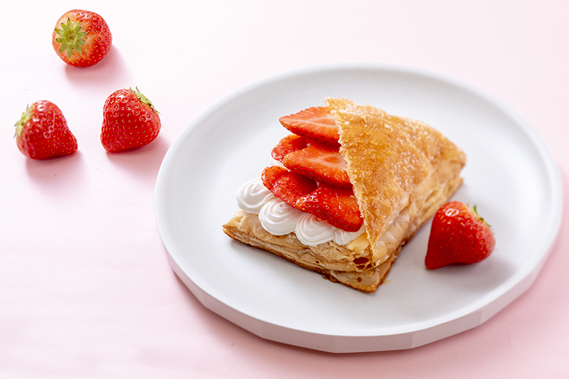 [取り扱い商品]季節のいちごを使ったスイーツ、いちごのフレジェ 、いちごのロールケーキ、いちごのタルト、アップルパイ、大地のチーズケーキなど定番商品。